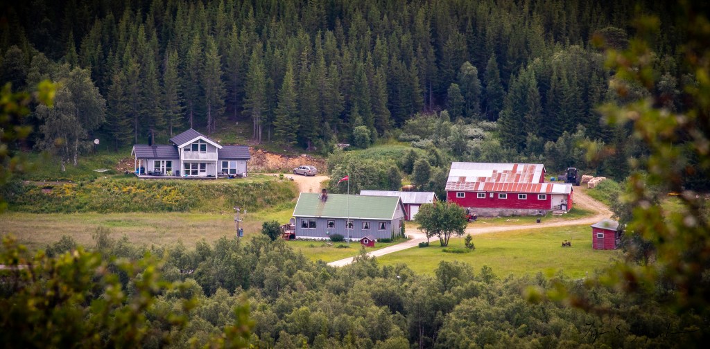 Sandbakken gård ligger i Evenesdal i Saltdal kommune. Gården har snaue 2000 mål med innmark, utmark, myr og fjell. Sandbakken ble først utskilt i 1896 og vi er fjerdegenerasjons eiere/drivere (hoppet over èn generasjon). Vi overtok gården i 2015, og bygde hus i 2016/2017, som var innflyttingsklart februar 2017.