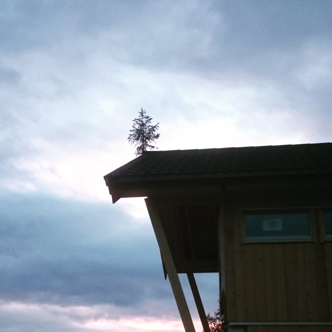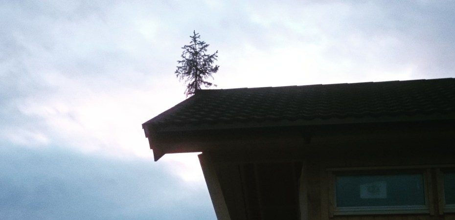 Lød det ut av telefon min. Det var Randi (farmor) som ringte. Ei gran på taket, jasså. De fleste skjønner sikkert hva dette betyr, mens jeg utbrøt: «Ei gran på taket, kem i svartn har satt ei gran på taket?».