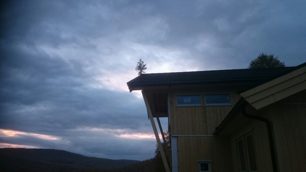 Jeg kjørte opp til Evenesdal etter jobb, men var ferdig sent denne dagen pga møter. Siden snekkerne nærmer seg ferdig før de tar to ukers pause så jeg ingen annen råd enn å kjøre rett opp til Sandbakken med de beste drikkevarene jeg kunne finne på Coop Prix. Det virka som om snekkerne satt pris på den lille gaven og at de mente at nå ville taket ha alt hell med seg og holde seg tett i lang tid.
