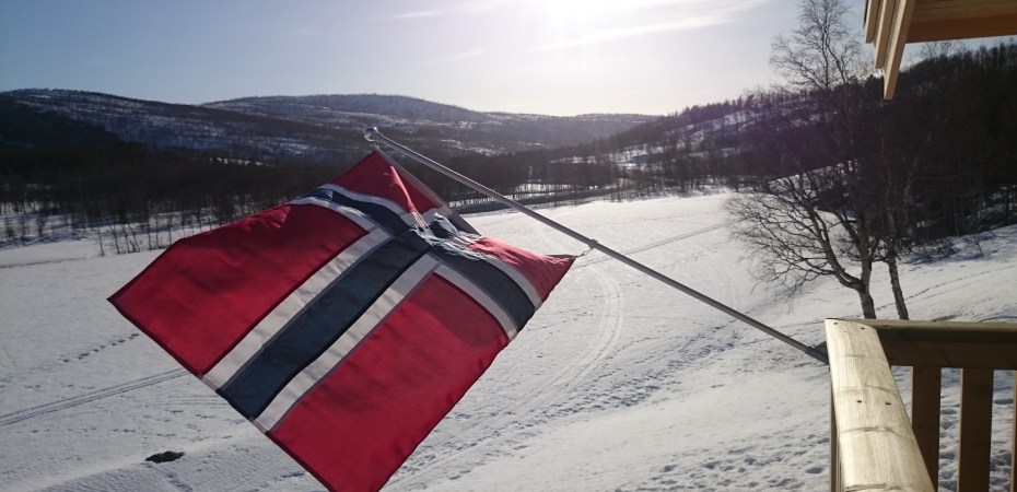 Kan snørekorden for 17. mai være satt allerede første år i nytt hus? Til tross for noen uker med finvær og snøsmelting var det fremdeles 118 cm sny på flat bakke (målt på åker nedenfor huset) på ettermiddagen 17. mai.