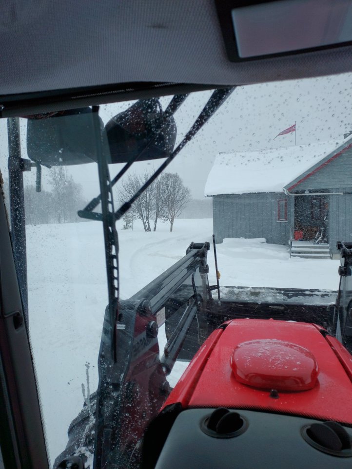 Etter fire timer på Teams var det greit å komme seg ut litt. Selv om jeg personlig ville foretrukket stekende sol, lett pudderføre, appelsin og kvikklunsj på en liten fjelltopp. Ikke en trang traktorhytte med olje og diesellukt. Som også ble dagens lunsjrom..