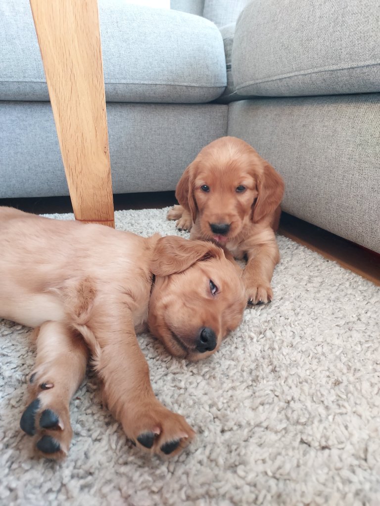 Molte er en blanding mellom flatcoated retriever og irsk setter. Hun og sine tre søsken bor foreløpig sammen med mamma Furu (flatcoated retriever) og pappa Rago (irsk setter) på Hemnesberget.