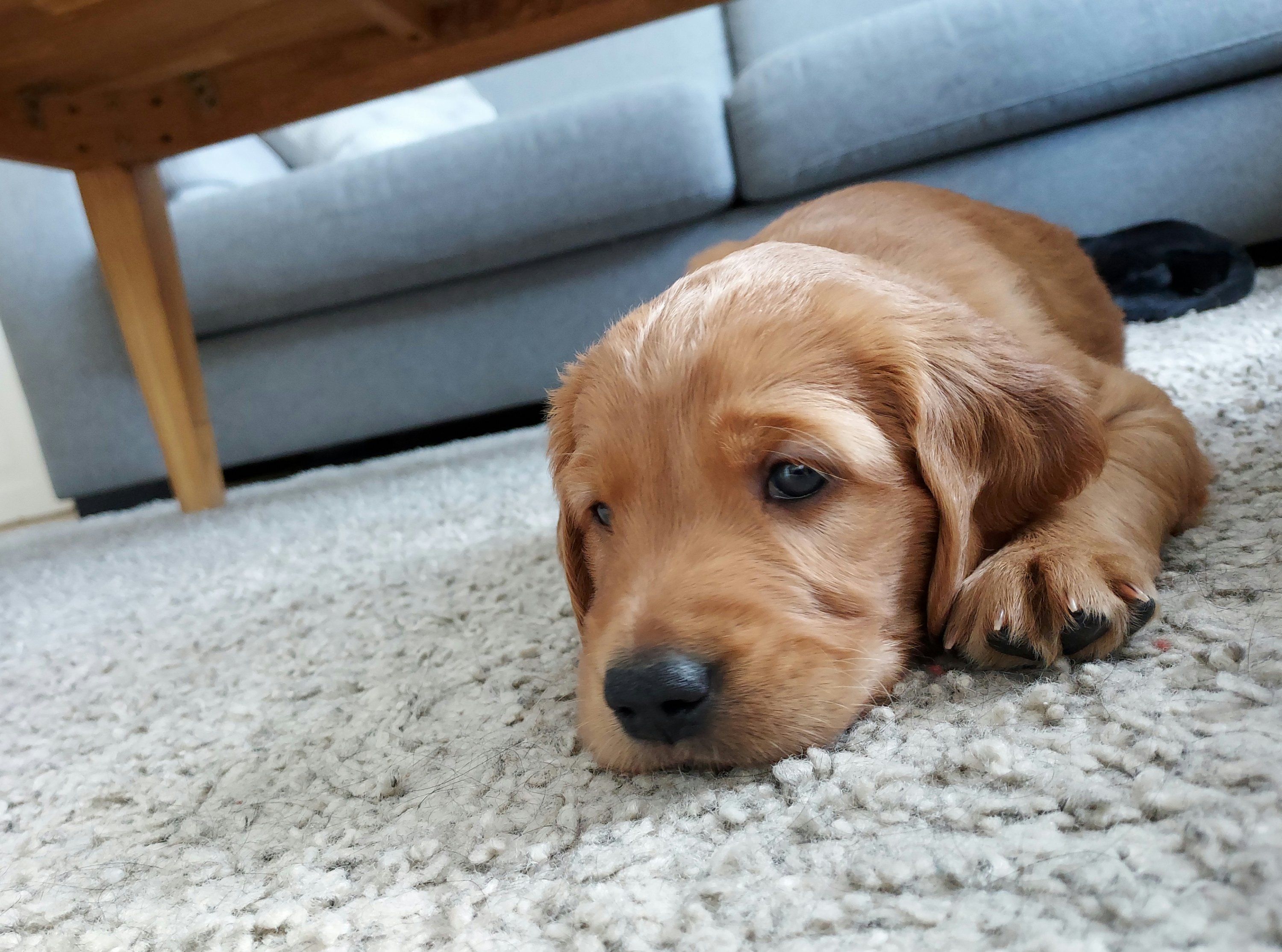 Hun er leveringsklar 1. mai, om tre uker har vi en ny hund på gården!