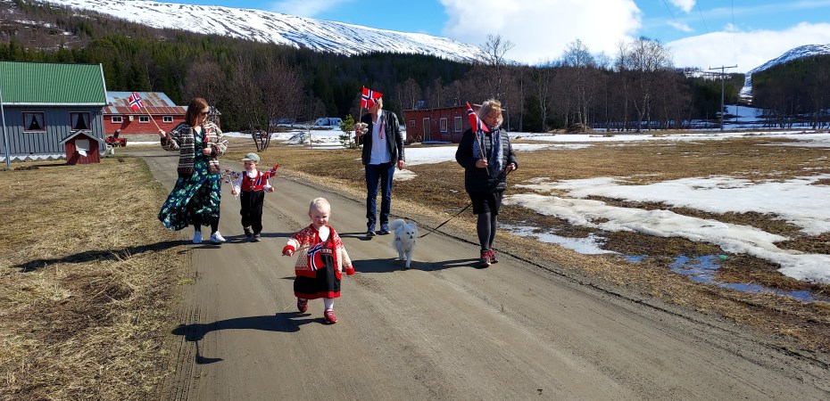 I år feiret vi nasjonaldagen for femte gang på Sandbakken gård. Som ifjor satte koronarestriksjonene en ørliten demper for stemninga. Likevel skal vi innrømme at det var litt deilig å feire 17. mai hjemme, uten stress for å rekke hit og dit.