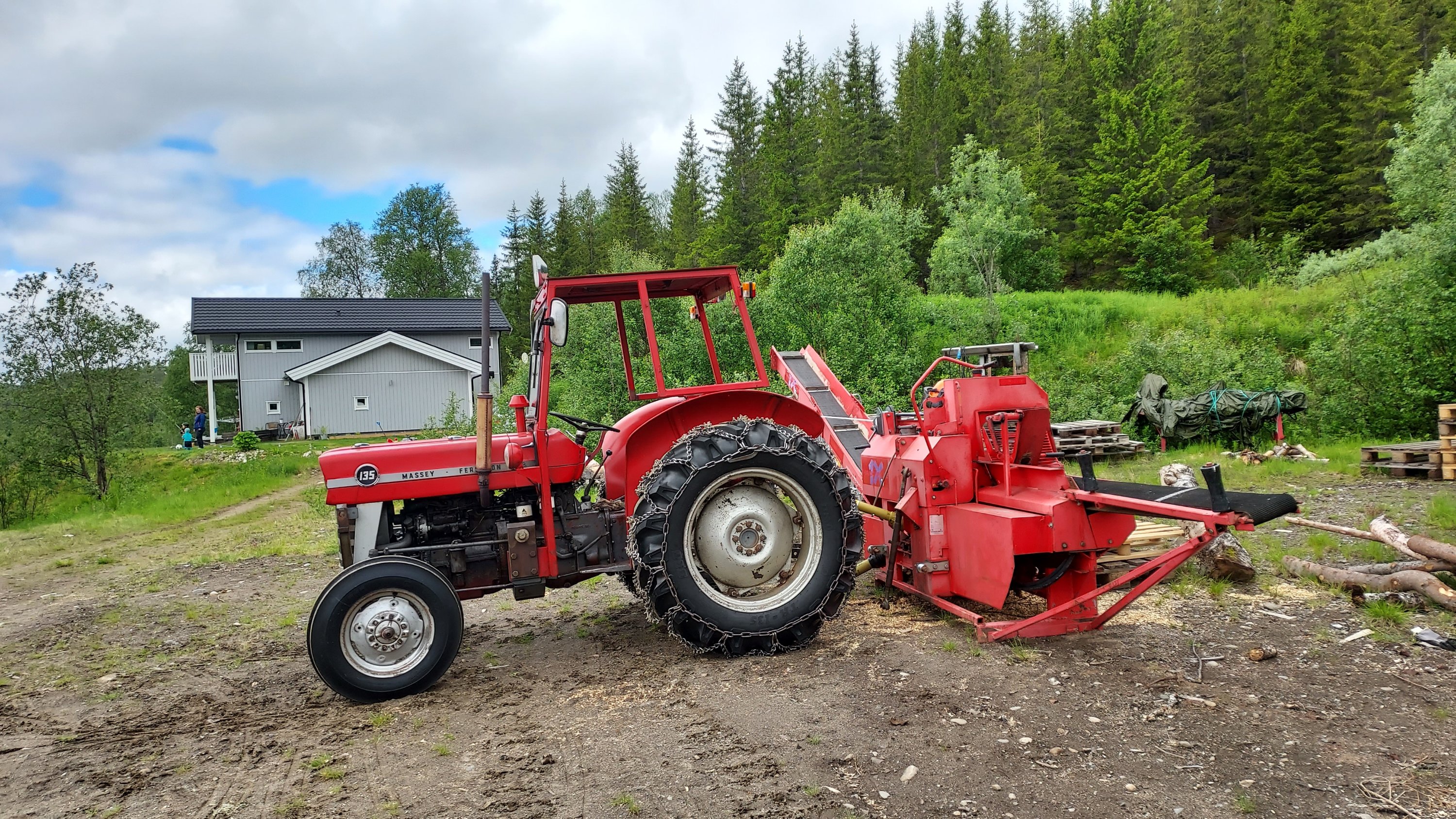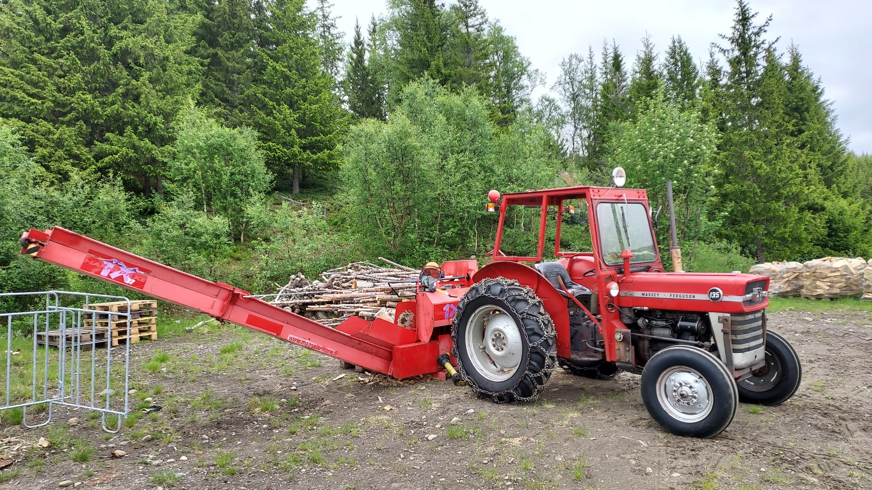 I år har han derfor sett seg om etter en til traktor, til å ha bak vedmaskina. På nabogården sto det en Massey Ferguson 135, som hverken starta eller gikk, som han kjøpte til en billig penge.